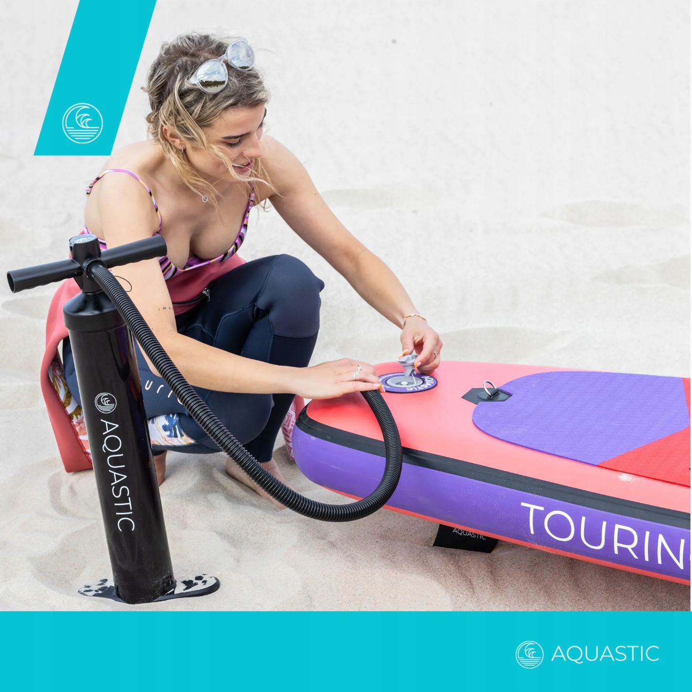 Насос Aquastic був розроблений для стабільності під час використання. Широка основа забезпечує чудову підтримку для ніг, і все це надійно стоїть на різних поверхнях, що полегшує накачування каяка.