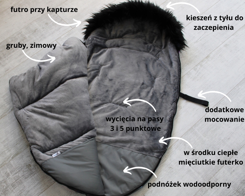 Практичний, дуже теплий, зимовий спальний мішок для коляски та санок з водонепроникного матеріалу. Зігріває, ідеально підходить для холодних зим.