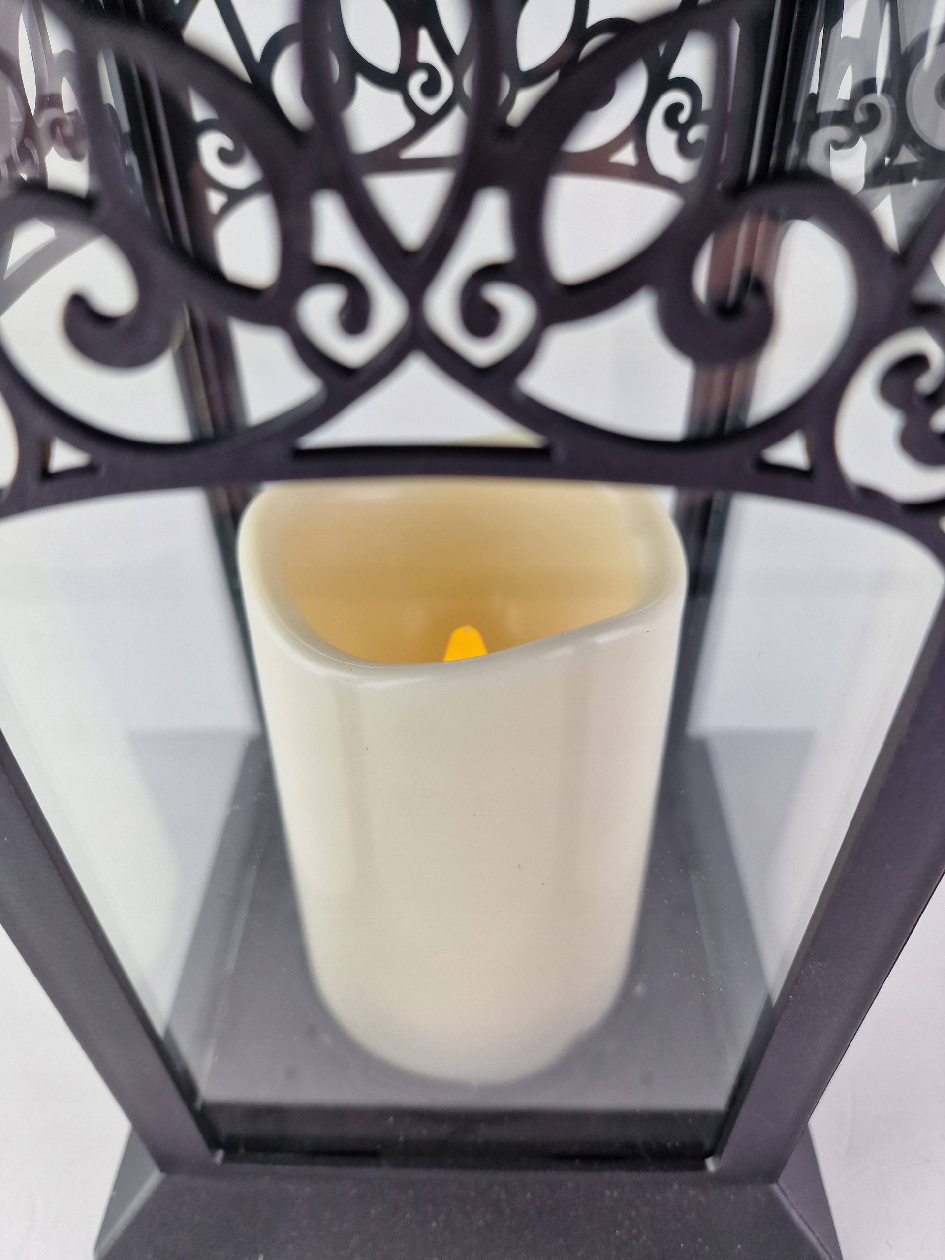 Чорний декоративний ліхтар зі світлодіодною свічкою