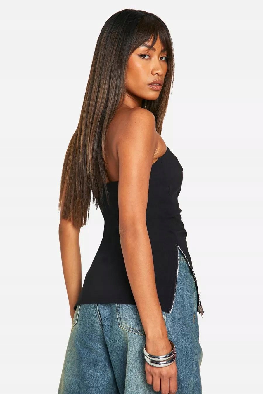 ЧОРНИЙ ТОП-КОРСЕТ, ГОЛЕ ПЛЕЧО, ВИРІЗИ З БОКІВ, BOOHOO 44