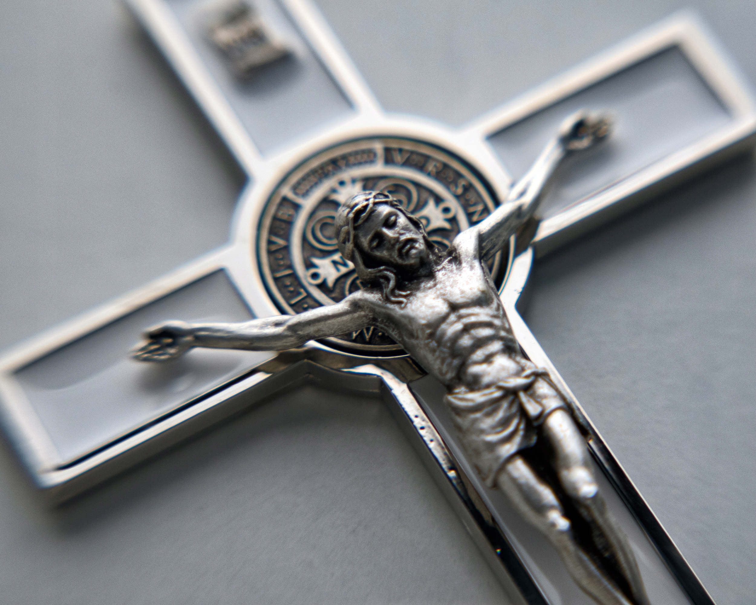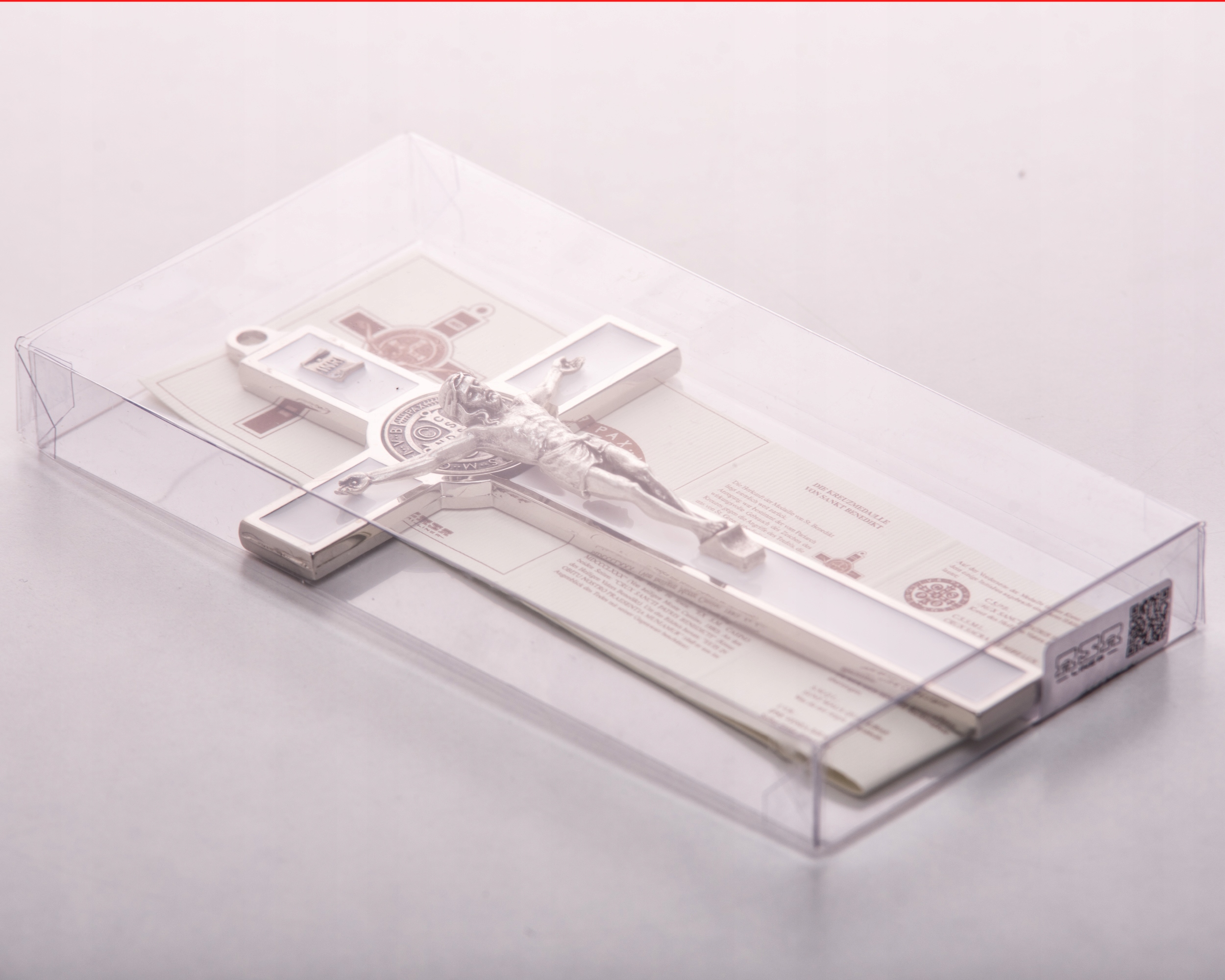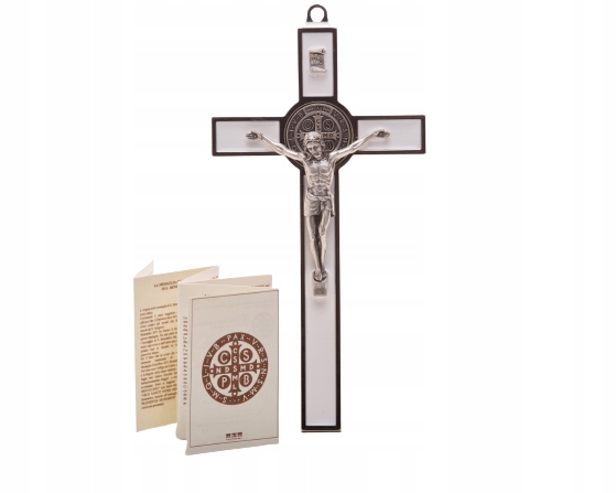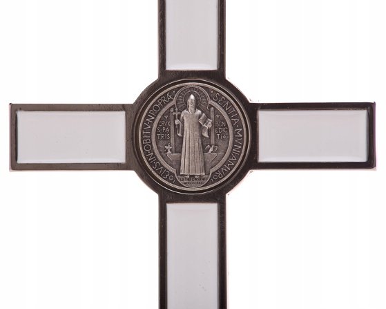 МЕТАЛЕВИЙ БЕНЕДИКТИНСЬКИЙ ХРЕСТ СРІБНО-БІЛИЙ