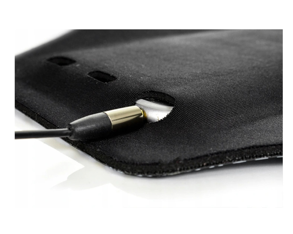 Усередині телефону він міцно тримається в футлярі, оскільки неопрен оточує його з усіх боків. Крім того, отвори, розташовані у відповідних місцях, дозволяють підключити до телефону навушники, зарядний пристрій або павербанк, не виймаючи його з чохла.