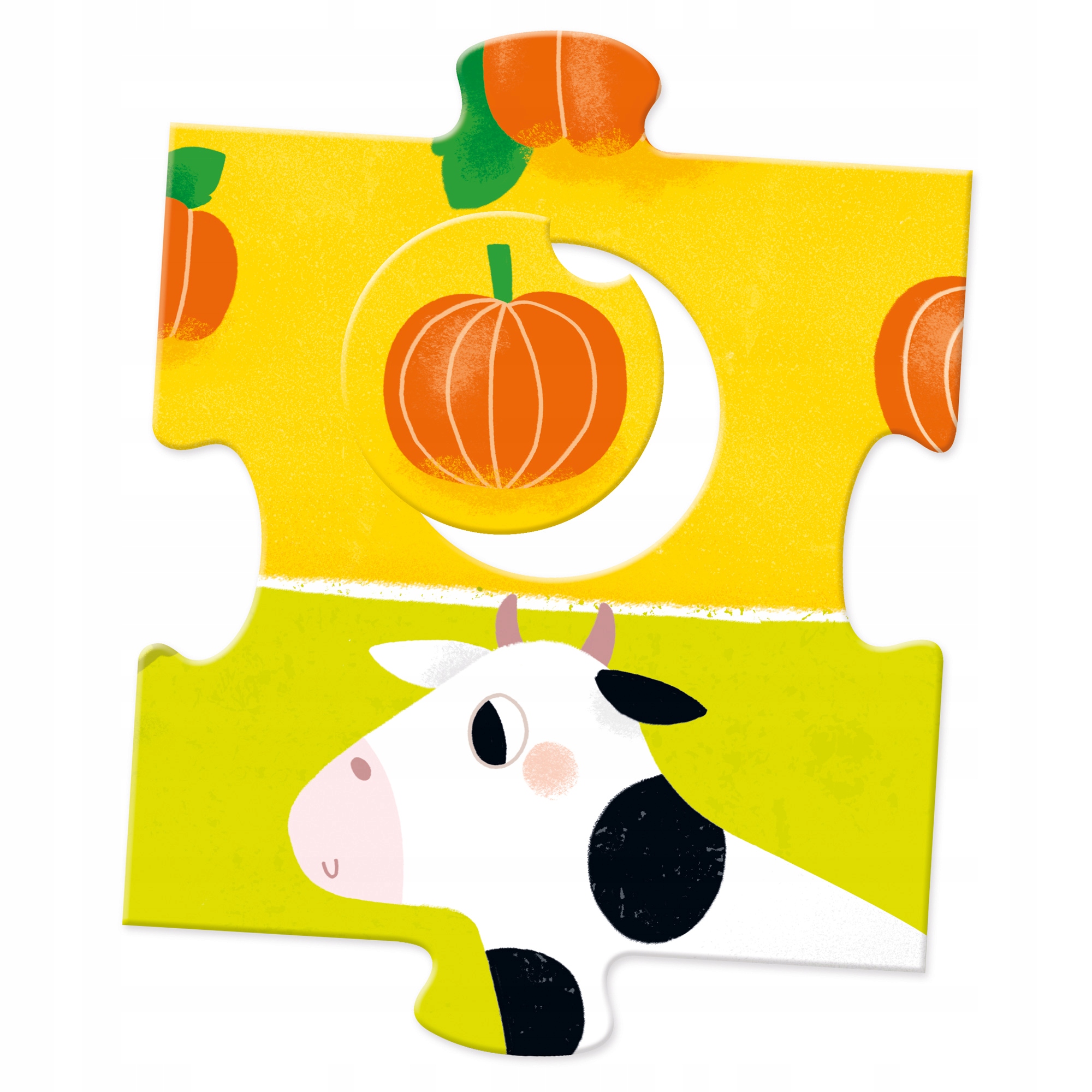 Веселі звірятка запрошують пограти разом! Розвиваюча підлогова головоломка в гумористичній формі показує, що відбувається на селі. Він складається з 34 елементів: 24 традиційних елементів головоломки та 10 знімних кілець, які потрібно встановити в отвори. Це чудова ідея для першого багатокомпонентного пазла для маленьких.