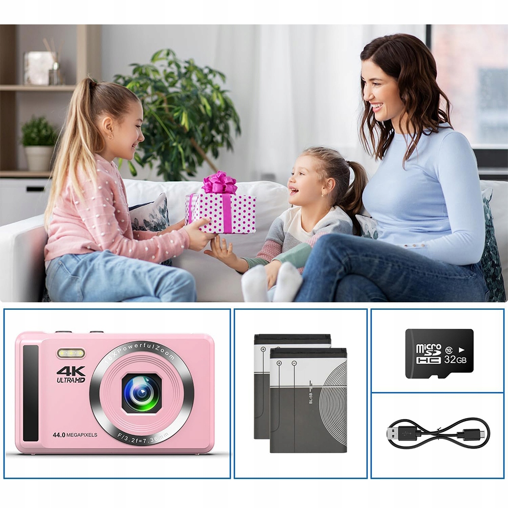 У комплект входить SD-карта на 32 ГБ, два акумулятори та кабель для заряджання Type-C. 2,8-дюймовий IPS-дисплей забезпечує зручний інтерфейс для швидкого перегляду, редагування та обміну фотографіями. Ця камера ідеально підійде як подарунок або для зйомки важливих моментів.