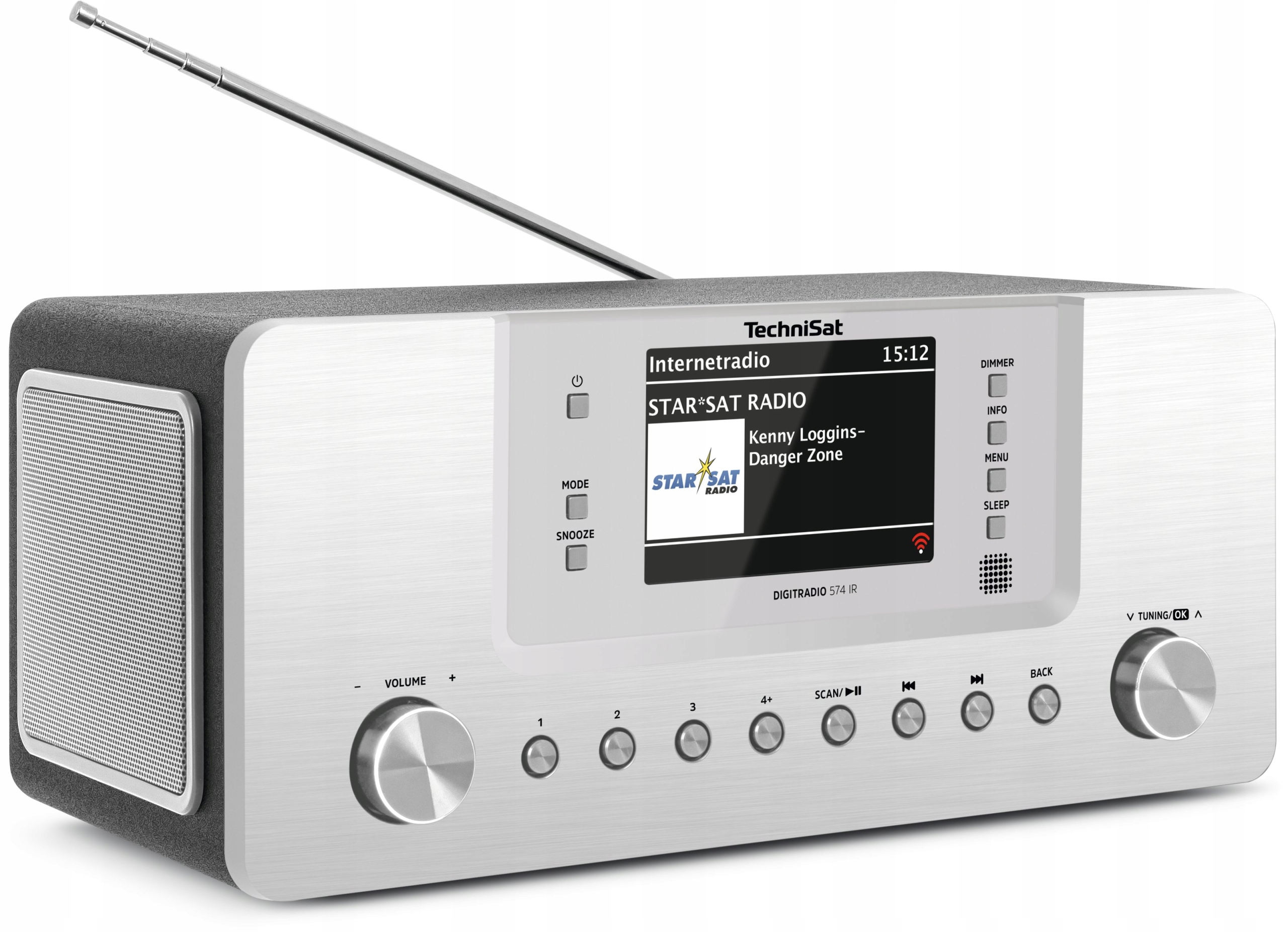 Technisat DigitRadio 574 IR це цифровий FM/FM-тюнер і DAB+. Додатковим функціоналом пристрою є можливість прийому інтернет-радіостанцій через WiFi та інтерактивний USB-порт (зарядка + відтворення мультимедіа). Завдяки передачі аудіо через Bluetooth він відтворює пісні, радіопрограми, подкасти та багато іншого з вашого смартфона чи планшета. AUX IN дозволяє підключати зовнішнє джерело музики, напр. смартфон). Він дозволяє приймати більшість популярних польських станцій, у тому числі: Nowy Światі подкасти.