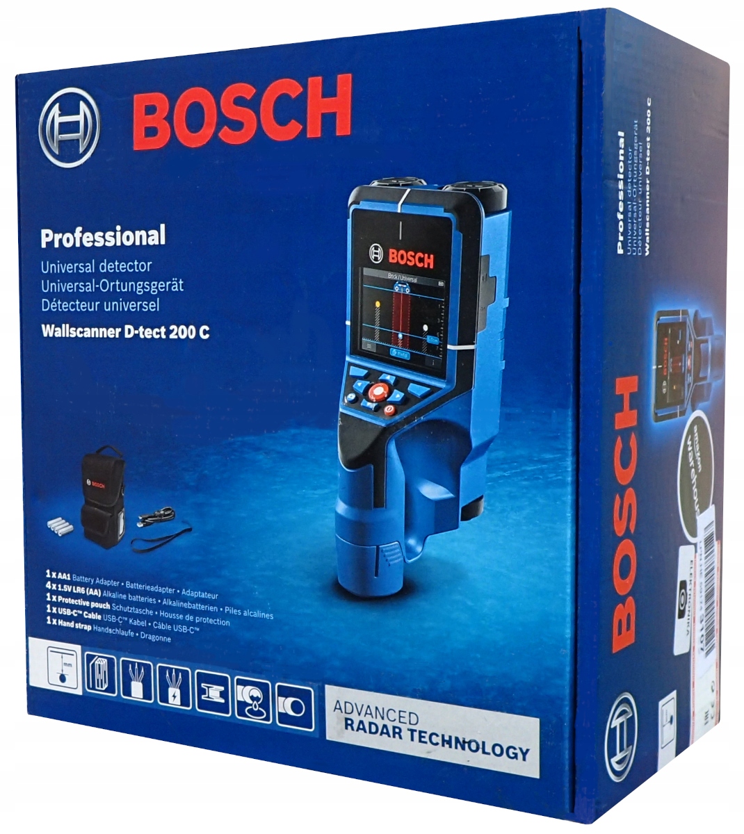 D-TECT 200 C від BOSCH є першим сповіщувач цього типу в світі, який оснащений сучасними радарними та індуктивними датчиками, що дозволяють локалізувати об'єкти на глибині до 20 см, а також завдяки великому рідкокристалічному дисплею, на якому під час роботи відображаються всі повідомлення та інструкції (також у Polish), неймовірно легкий і простий у використанні.