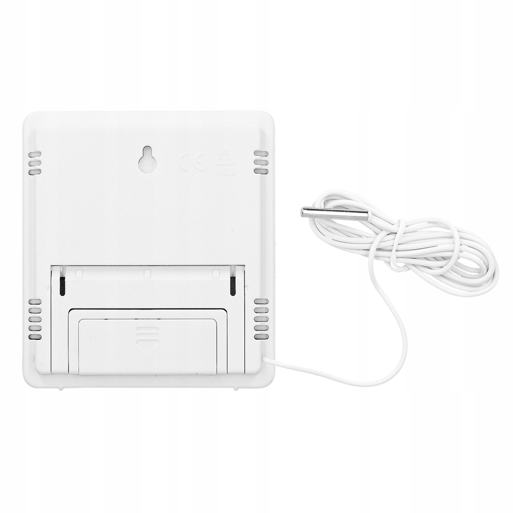 - 1. Він не містить батарей AAA для митної політики. Зміна режиму дисплея температури розташована ззаду, біля підставки, використовуйте штифт, щоб приклеїти отвір (вниз, вгору є скидання), ви почуєте звуковий сигнал. Кабель - це лише температурний зонд, він боїться води (голова) і не може виявити вологість.