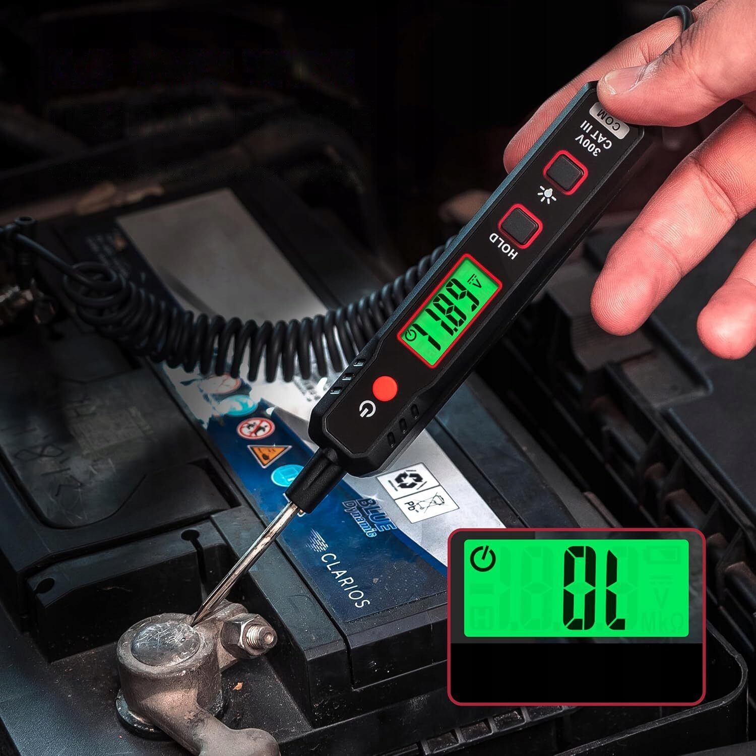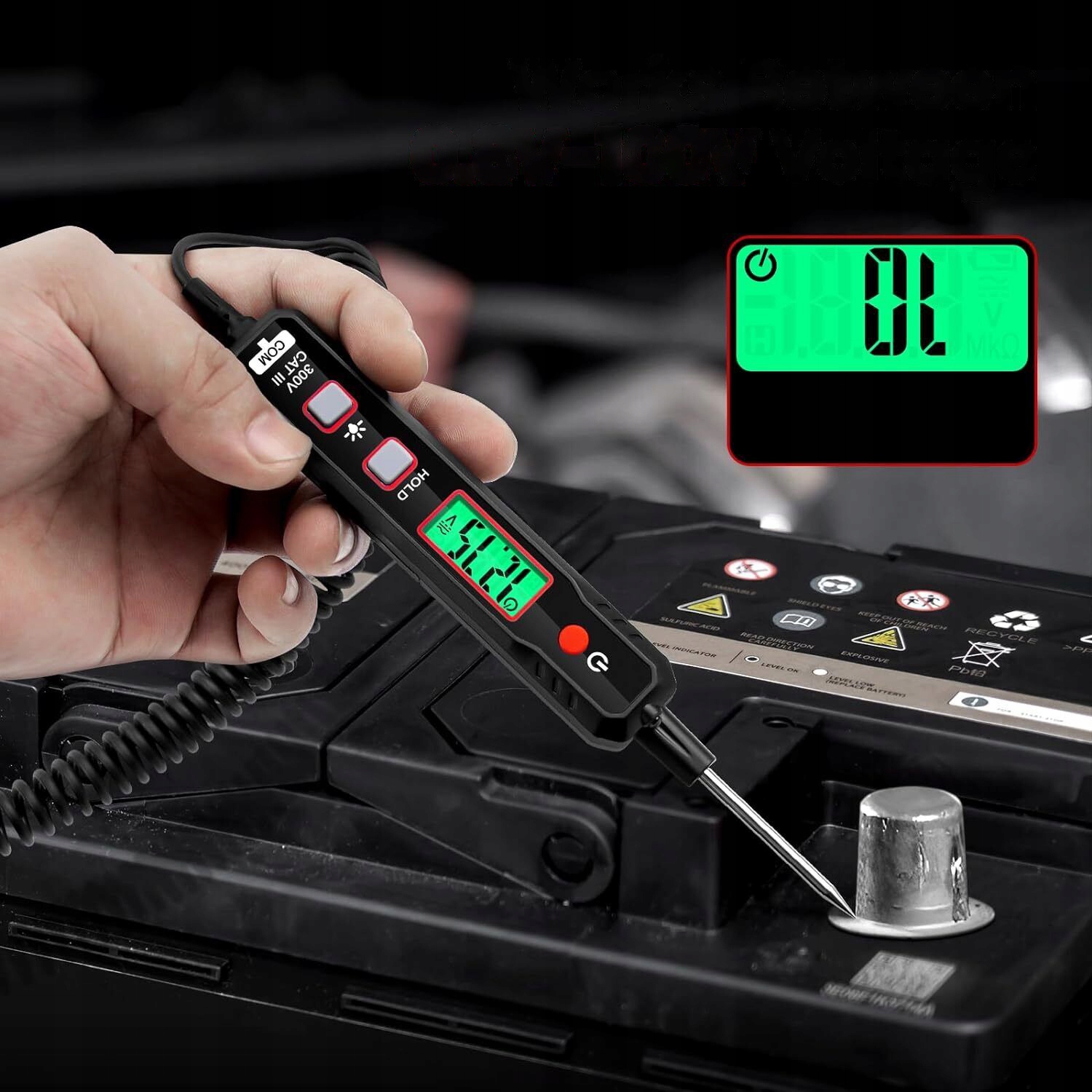 - Завдяки широкому діапазону виявлення від 0,8 В до 100 В постійного струму, зонд підходить для різноманітних тестів ланцюгів автомобіля, таких як перевірка запобіжників, кабелів, акумуляторів та Системи ACC, що полегшує виявлення несправностей у вашому автомобілі.
