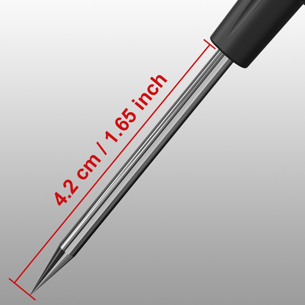 - Зонд має захисний ковпачок від короткого замикання. Оснащений РК-дисплеєм із підсвічуванням і ліхтариком, він забезпечує чіткіше читання та точну роботу в темних місцях. Коротке натискання кнопки освітлення вмикає/вимикає підсвічування, а довге натискання вмикає/вимикає ліхтарик.