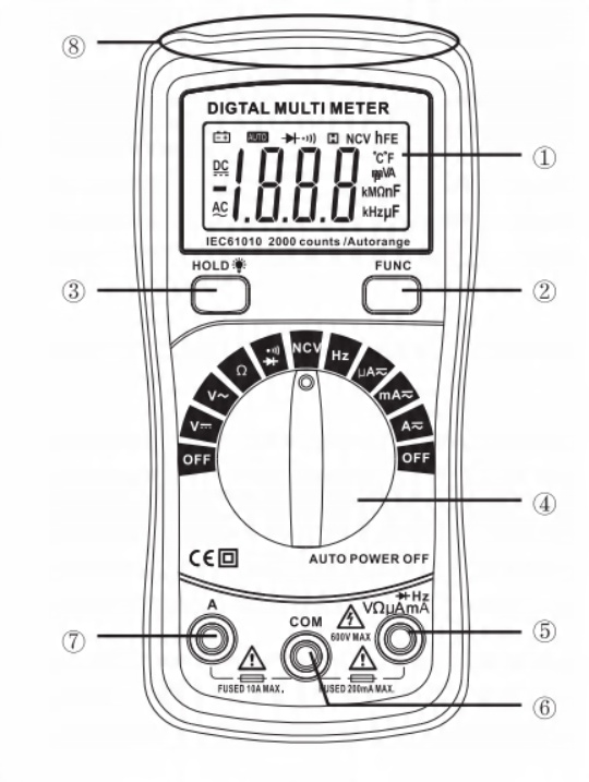 Корпус мультиметра виготовлено з неслизького, легкого та м’якого пластику, який запобігає падінню. Підставка тримає виріб під кутом 45 градусів, щоб полегшити читання на дисплеї