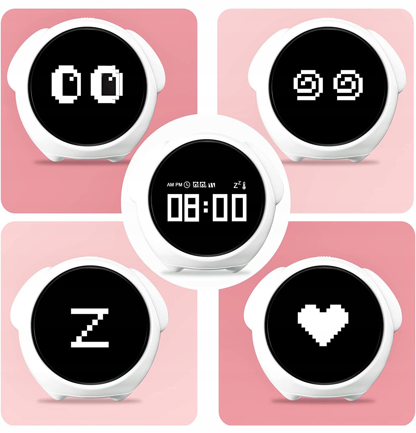4 Висловлюючи дрімоту, освітлюється, і ви зможете повторити 5 хвилин сну. Необмежена зміна циклів, натисніть верхню кнопку, щоб вимкнути тривогу дня. Ви можете встановити часовий формат (12/44 або AM/PM) та температура залежно від ваших потреб. Ліжкову світильник можна керувати вручну або вмикати її голосом. Він вимкнеться 10 секунд після включення голосового контролю, який не витрачатиме енергію.