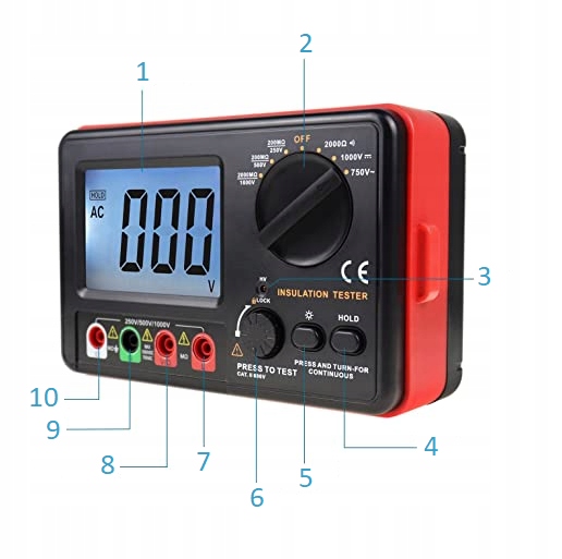 ▶️ Призначений для перевірки опору ізоляції між елементами електричного корпусу та ізоляційними елементами, такими як: ізоляція проводів, електроінструменти, кришки/корпуси пристроїв, розподільні коробки