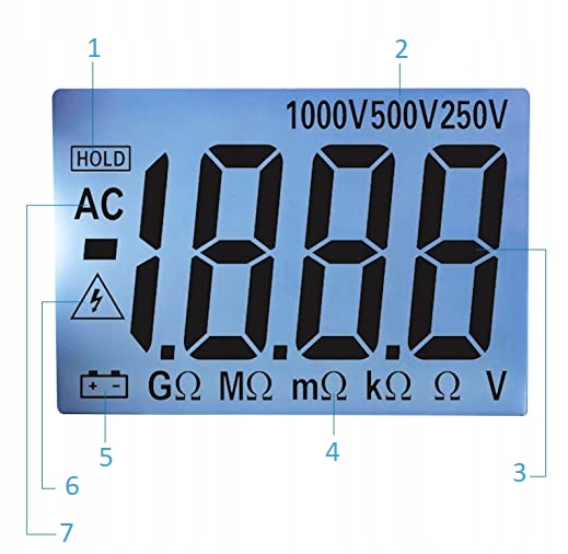 ▶️ Вимірювач дозволяєвимірювати опір ізоляції, вимірювати змінний струм (AC), вимірювати постійний струм (DC), мал. вимірювання опору, зберігання виміряних вимірювань/даних
