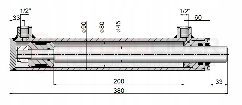 ГІДРАВЛІЧНИЙ ЦИЛІНДР 80/45/200 Л: 380