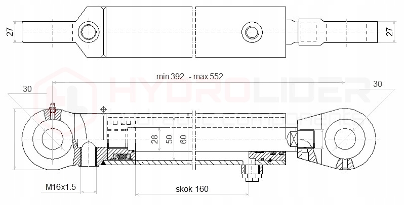 ЦИЛІНДР ГІДРАВЛІЧНИЙ 1-STR 50/160 ХОД 160 мм L392 ГІДРОЛІДЕР