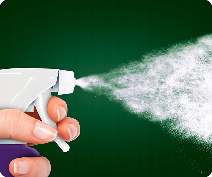 - Побризкайте на поверхню та залиште на 5 хвилин, щоб засіб подіяв. У разі більшого забруднення залиште максимум на 20 хвилин.