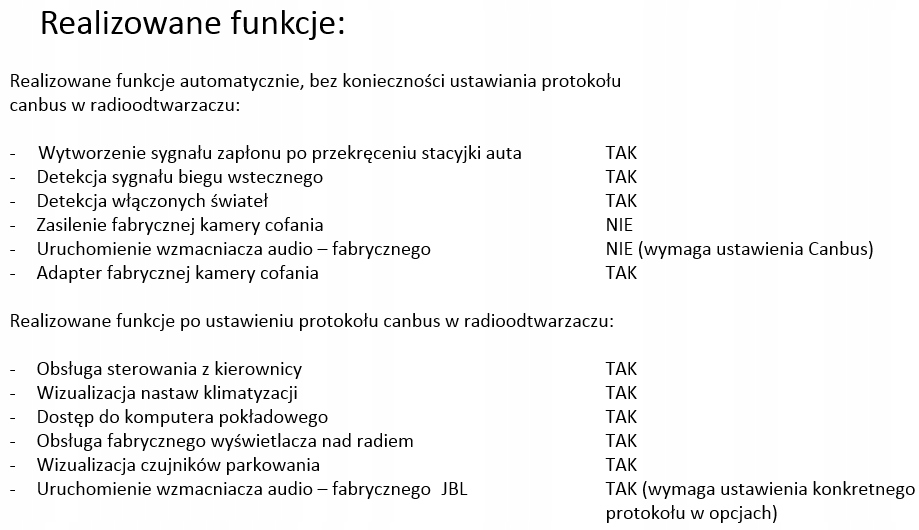 (потрібно встановити протокол Canbus у параметрах радіо, щоб отримати всі функції). Без встановлення протоколу Canbus ваша радіостанція матиме основні функції, включно з найважливішою – увімкнення радіо.