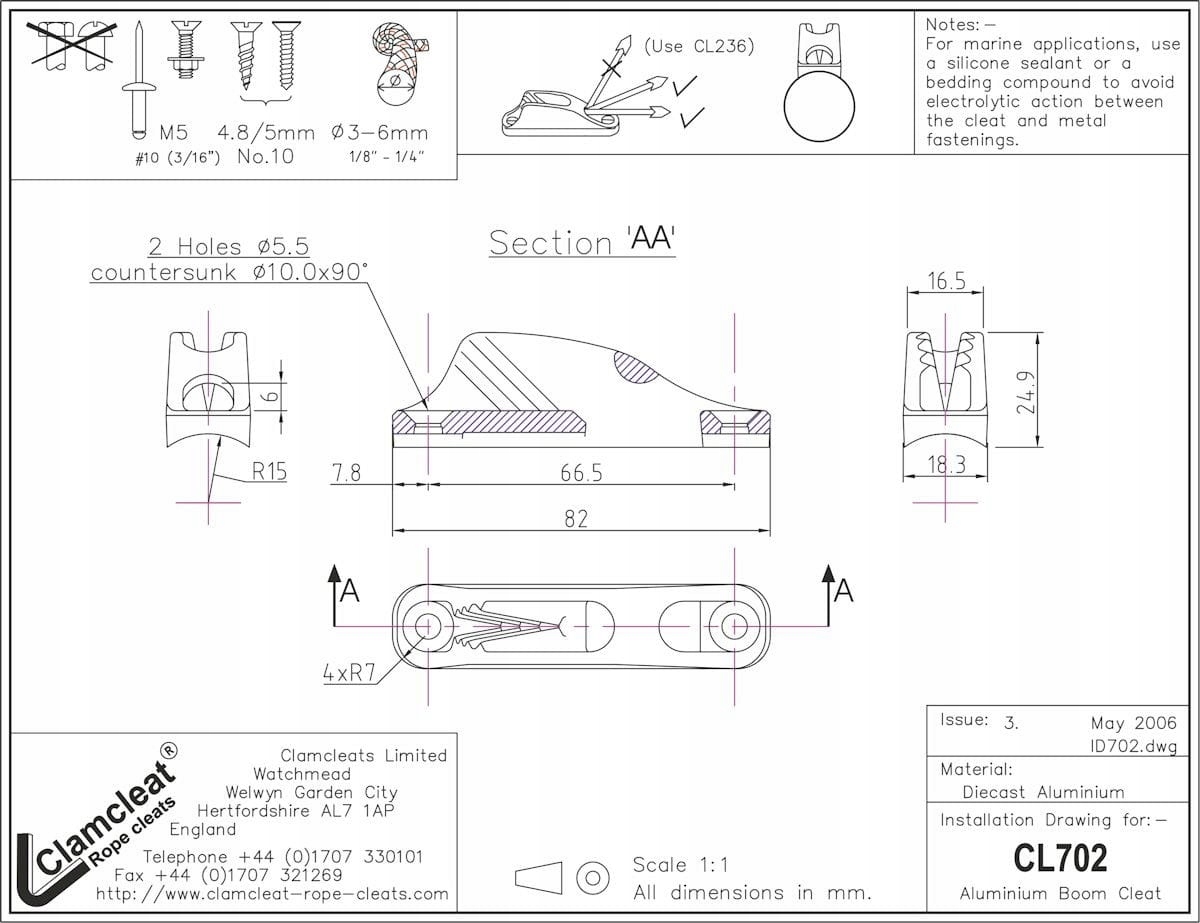 CLAMCLEAT CL702 3-6MM RACING ALU