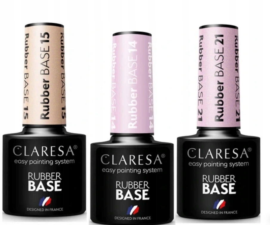 CLARESA RUBBER BASE ГУМОВА ОСНОВА ДЛЯ ГІБРИДНИХ НІГТІВ НАБІР 3 КОЛЬОРИ