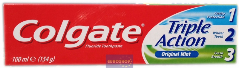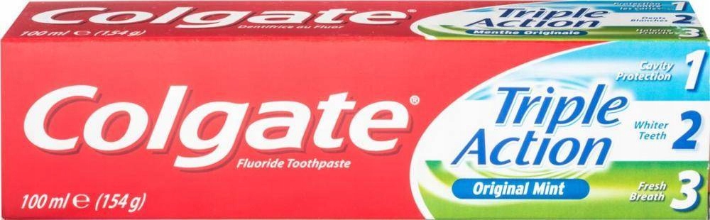 Colgate Triple Action - це зубна паста потрійної дії, яка ефективно очищає, захищає від карієсу та забезпечує тривалу м'ятну свіжість. Його формула була розроблена для підтримки щоденної гігієни порожнини рота - від видалення зубного нальоту, через зміцнення емалі, до освіження дихання. Завдяки приємному, насиченому м’ятному смаку зубна паста залишає відчуття чистоти та свіжості після кожного чищення.