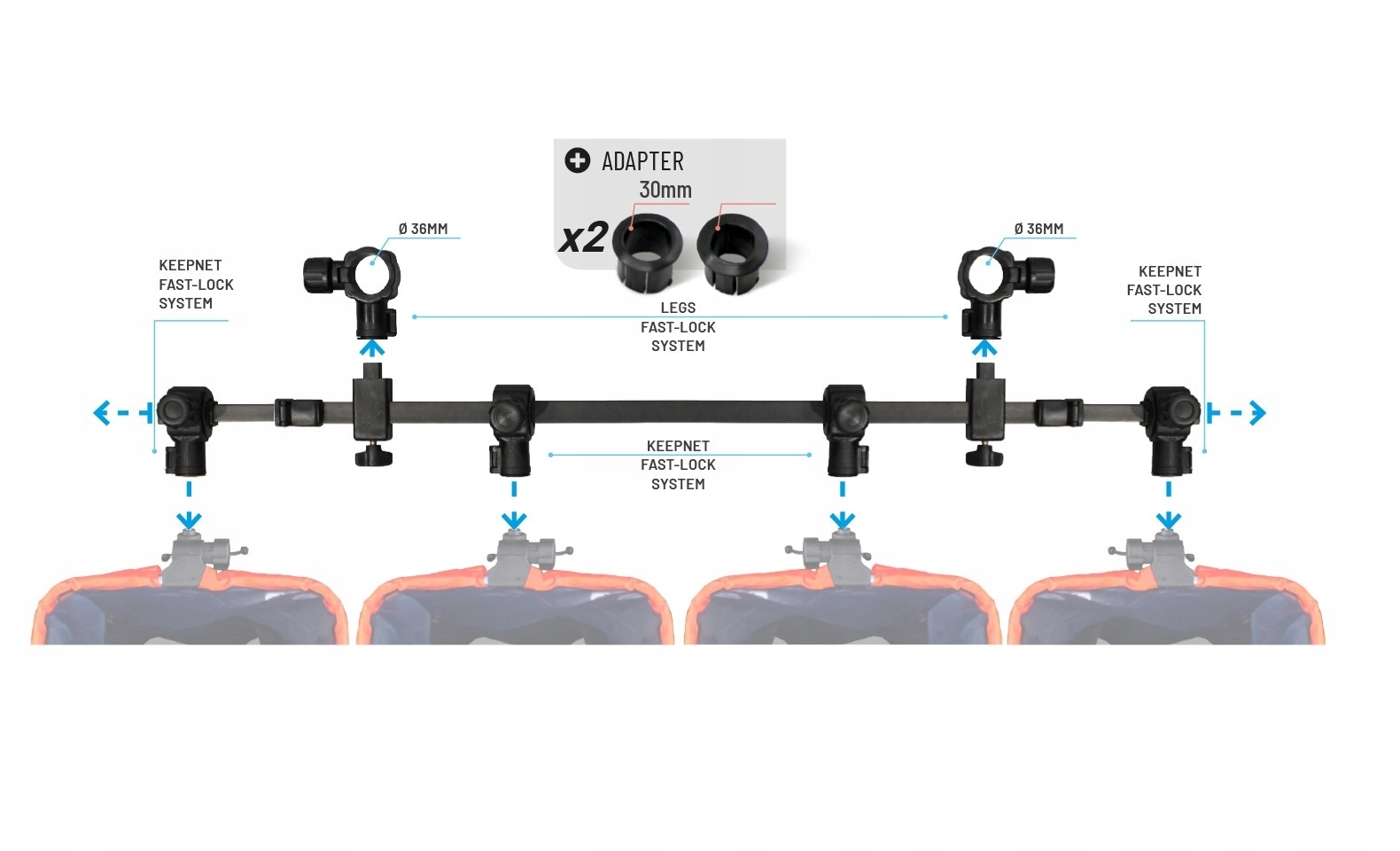Colmic Net Bar — дуже практичний інструмент для утримання сітки на місці під час риболовлі. Ця планка оснащена 4 з’єднувачами, що дозволяє безпечно та надійно прикріпити кілька сіток. Він легко монтується на підсідельний ящик і забезпечує надійну підтримку сітки. Завдяки зручному дизайну Colmic Life Net Bar є практичним і необхідним аксесуаром для кожного рибалки.