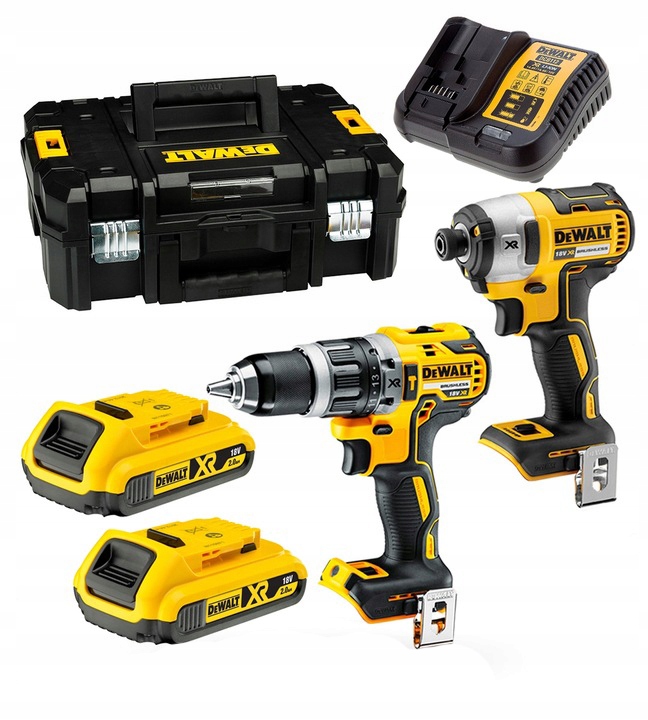 Набір акумуляторних інструментів Combo 2 на 18 В у кейсі з двома літій-іонними акумуляторами 2,0 А·год DCK266D2T DeWalt: безщітковий ударний дриль DeWalt DCD796 + безщітковий ударний гайковерт DeWalt DCF887.