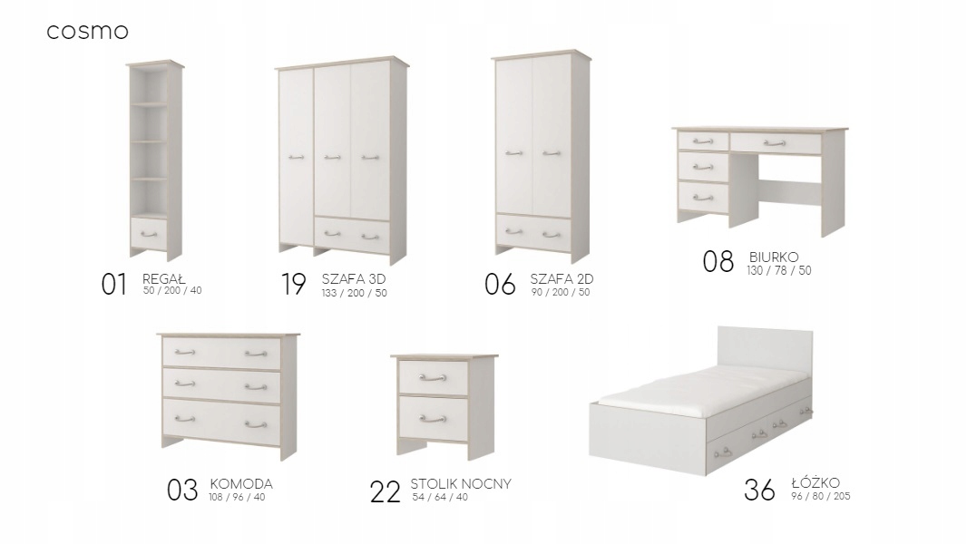 Практичний, дуже місткий гардероб Kosmo, характеризується ідеально запланованою поверхнею зберігання. Просторий простір для висячого одягу на вішалках. У нижній частині є глибокий ящик для нижньої білизни, шапки, шарфів та інших аксесуарів невеликих розмірів.