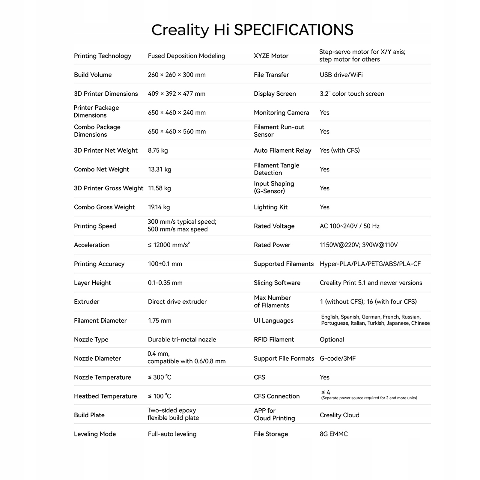 pin> 1 stast. Creality HI 3D -принтер 500 мм/с високошвидкісна система CFS FL