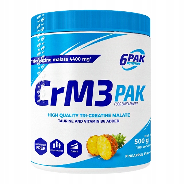 6PAK Nutrition CrM3 Pak. Дієтична добавка. Містить підсолоджувач. Передтренувальна формула на основі креатину у формі трикреатин малату з додаванням таурину і вітаміну В6. Продукт призначений для дорослих, які виконують фізичні вправи високої інтенсивності.