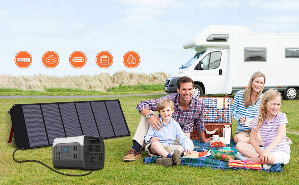 сонячна панель Ctoolita 200W дозволяє ефективно заряджати акумулятор під час сімейних пікніків, кемпер -поїздки та в пригодах свіжого повітря. Він має ефективність перетворення до 22%, широка сумісність з пристроями, водонепроникною конструкцією та зручною портативністю - ви можете отримати надійну енергію поза мережею, де б ви не були.