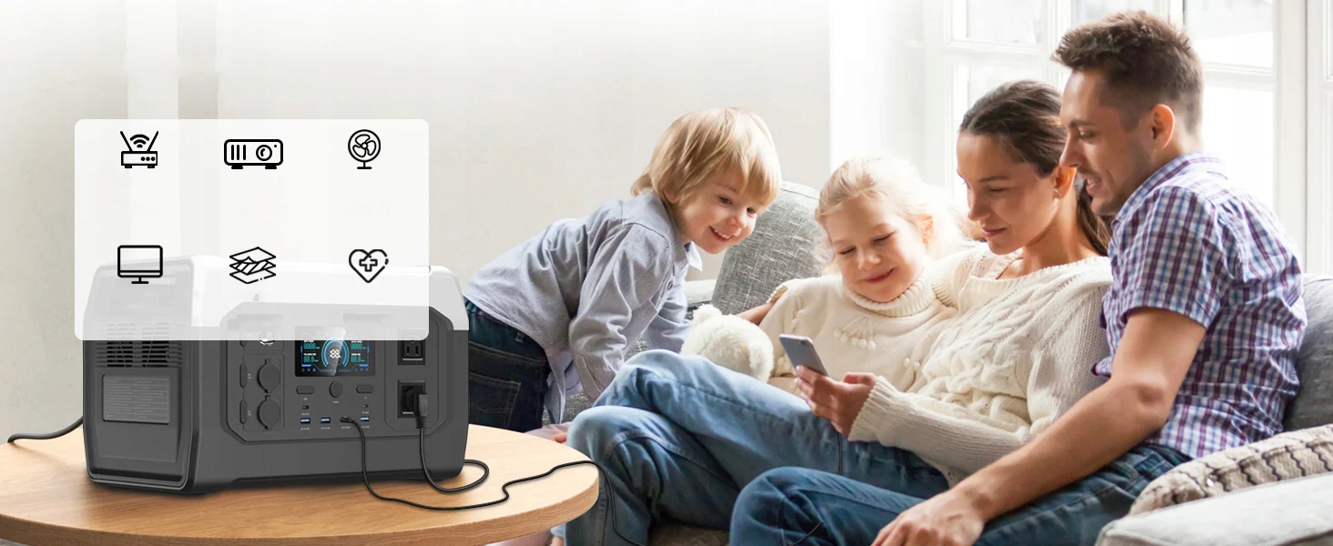 Портативна станція живлення Ctolity забезпечує підключення та комфорт під час перерв на джерело живлення. Він може забезпечити необхідні пристрої, такі як Wi-Fi (58 годин), вентилятори (17 годин), електричні ковдри (14 годин), проектори (12 годин) та настільні комп'ютери (6 годин). Ідеально підходить для сімей, які потребують безпечного, тихого та довгострокового постачання дому.