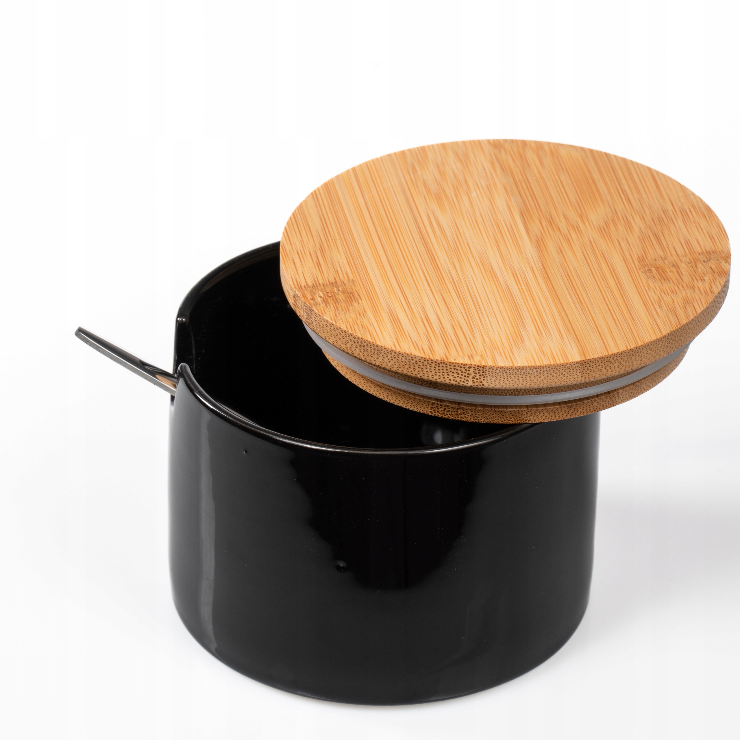 CUKIERNICA CZARNA PORCELANOWA Z ŁYŻECZKĄ POJEMNIK