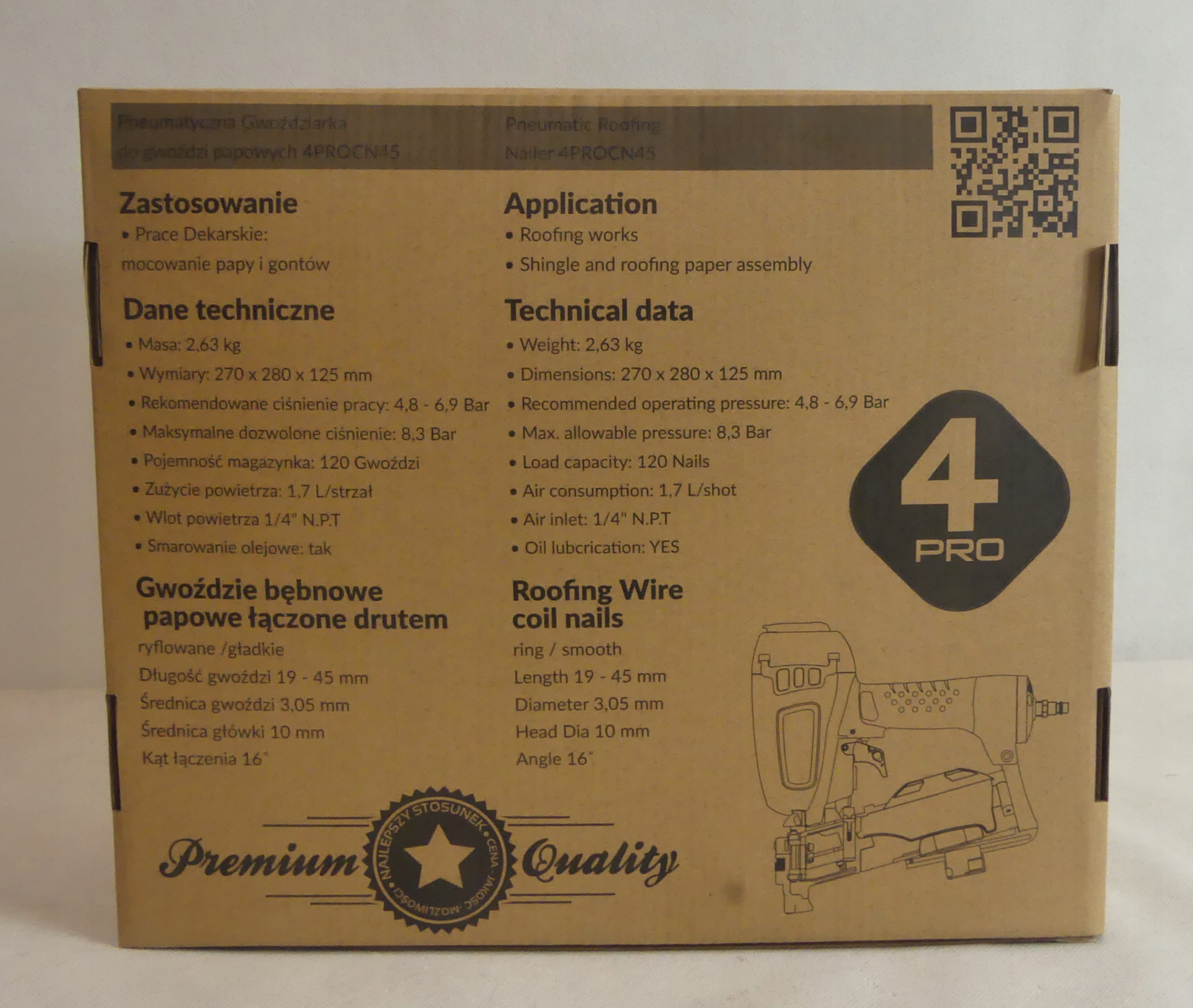 Власником торгової марки 4PRO є компанія OTTENSTEN POLSKA, при купівлі на даному аукціоні ми гарантуємо гарантійне та післягарантійне обслуговування оригінальними запчастинами, професійну консультацію по застосування інструментів і правильний підбір кріплень: скоби . шпильки, цвяхи або шурупи на стрічці.