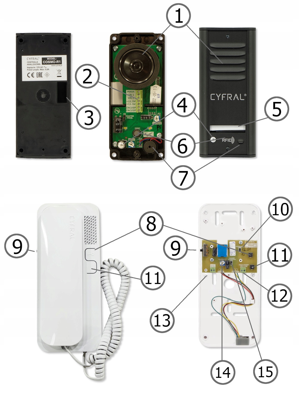 COSMO R1- це двопровідний домофон від польської компанії Cyfral. Він оснащений зчитувачем безконтактних міток RFID.