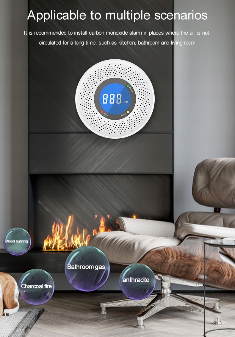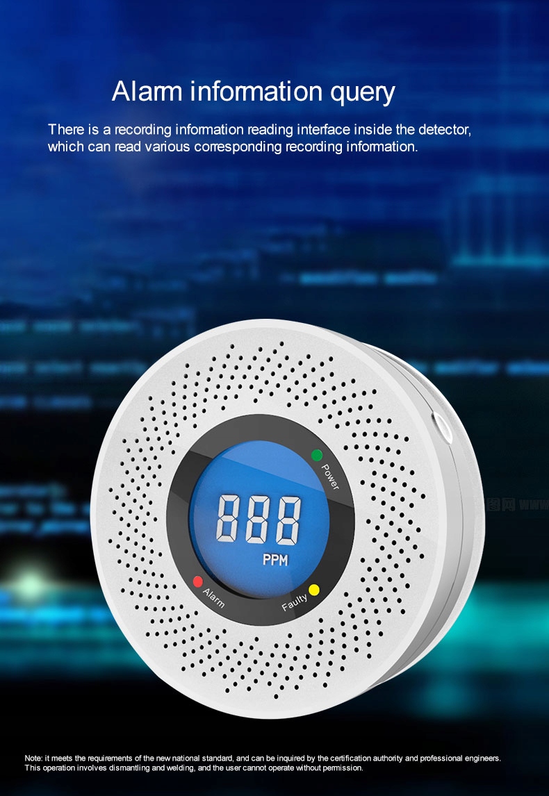CZUJNIK CZADU I DYMU DETEKTOR TLENKU WĘGLA CO BEZPRZEWODOWY LCD GŁOŚNY