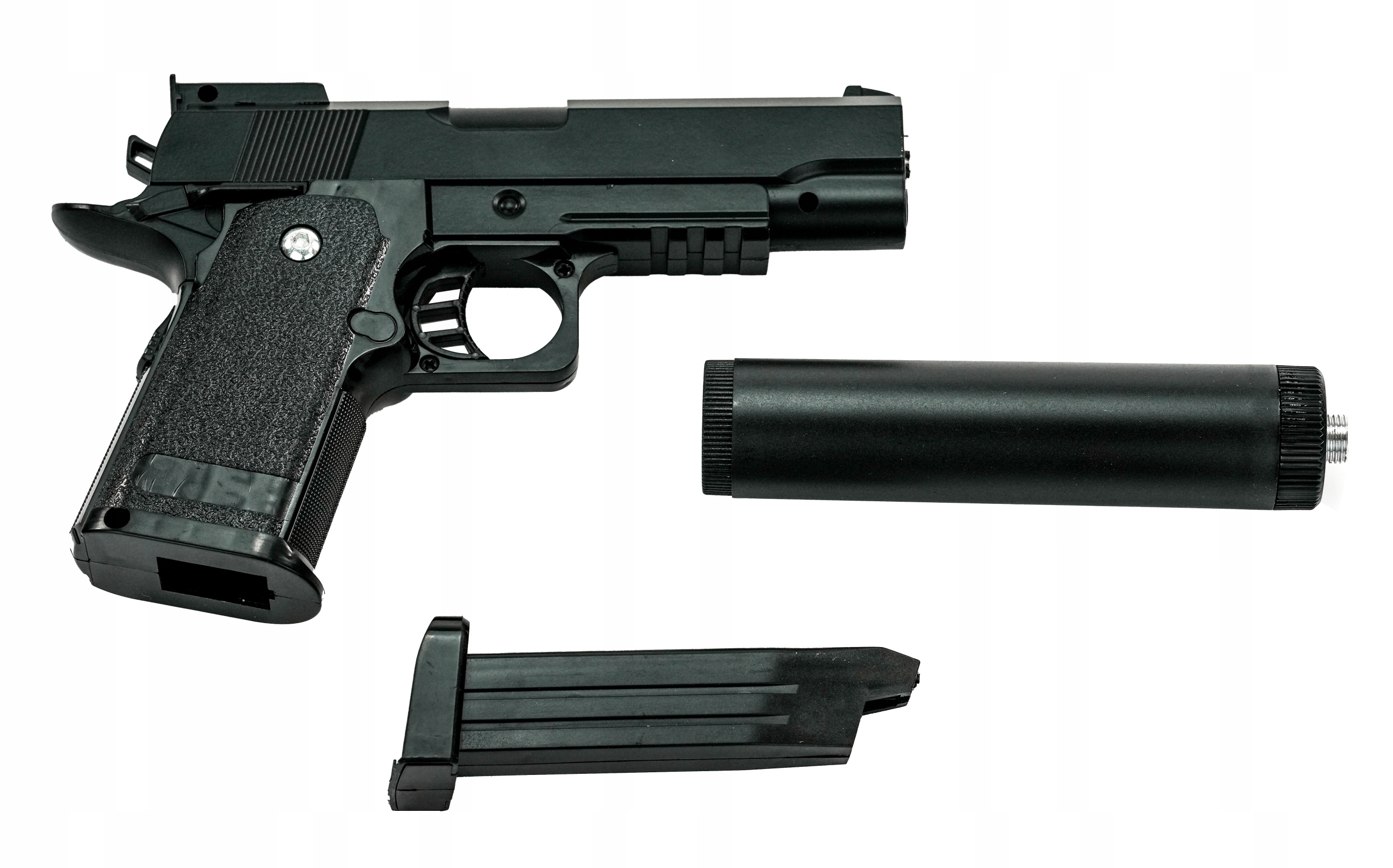 Пістолет COLT + ГЛУШНИК Журнал 1 упаковка кульок 6 мм (приблизно 10 шт.) Інструкція з експлуатації знаходиться на упаковці Виріб упакований в естетичну коробку БЕЗКОШТОВНИЙ пакет із 800 білих безшовних кульок