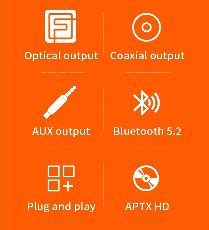 - Bluetooth 5.2 APTX HD SBC, MPL, AAC , APTX HD SBC, MP3, AAC , APTX-HD
