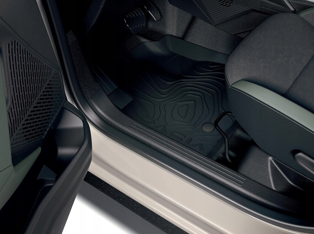 килима Сумісні килими з м'яким гібридним TCE130 (м'який гібрид)- несумісні з версією екстремального обладнання. . Напис " dacia " на водія та пасажирському килимі. Водонепроникний і простий у обслуговуванні.