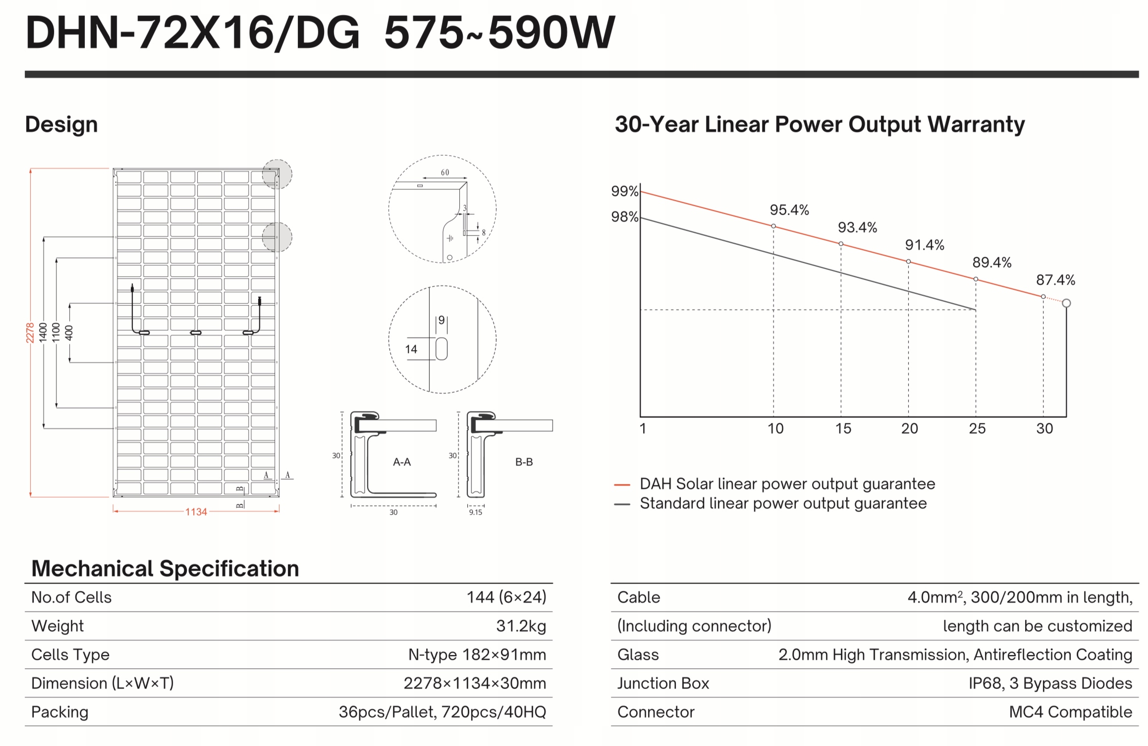 Інтелектуальний фотоелектричний модуль і хмарна платформа моніторингу DAH Solar знаходяться в авангарді технологічних інновацій. в сонячній промисловості. Масово вироблені фотоелектричні панелі Dah Solar користуються незмінно хорошою репутацією та довірою інвесторів з усього світу. Завдяки цьому продукція компанії відповідає всім вимогам до якісних фотоелектричних установок. Компанія щорічно виробляє та експортує фотоелектричні модулі загальною потужністю понад 500 МВт.