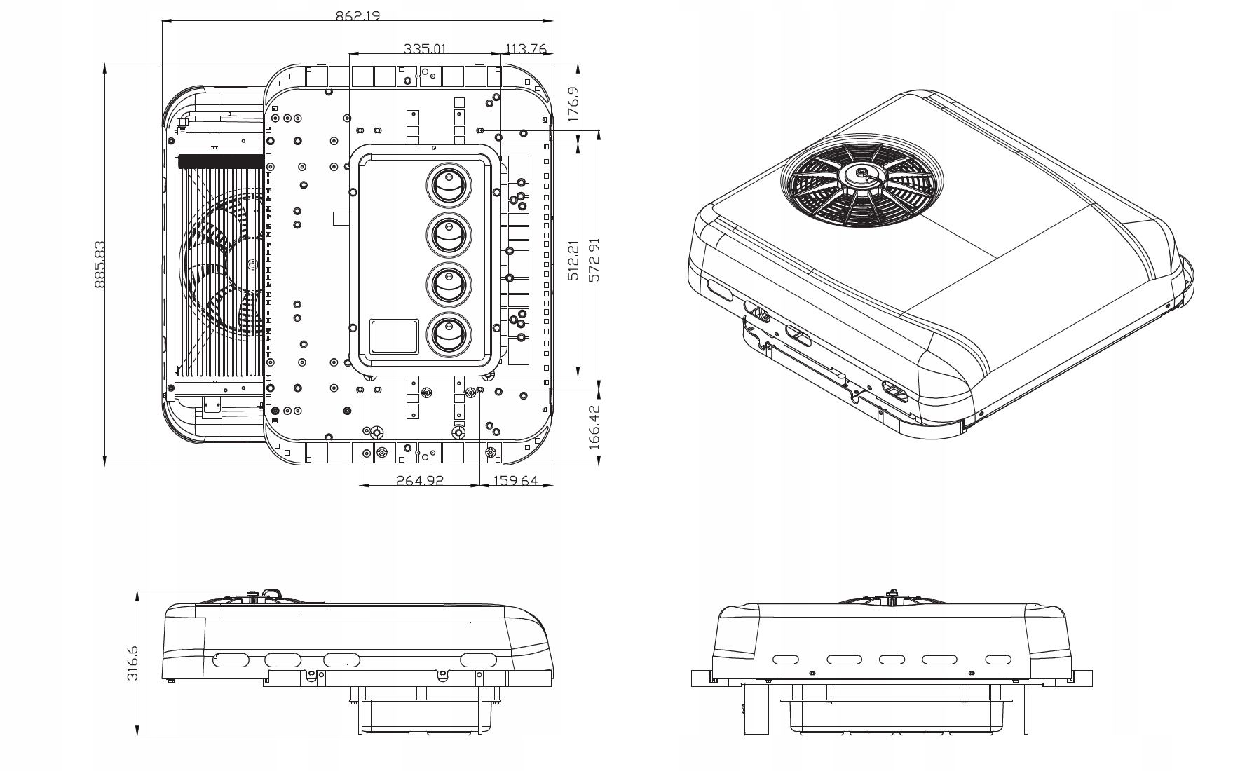 Кондиціонер простий у використанні та має надзвичайно тонкий і компактний дизайн із висотою 18 см. Кондиціонер CoolPro 2300 ідеально підходить для установки як замість люка з розмірами від 600x300мм до 900x600мм, так і в даху після вирізання монтажного отвору з мінімальними розмірами: 530x350 мм.