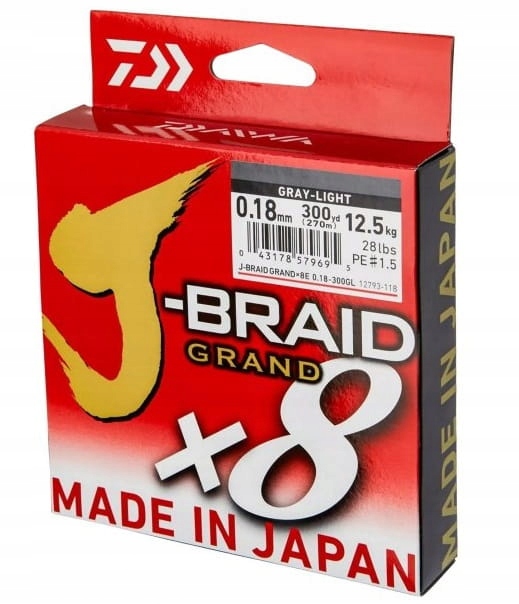 Новий Grand X8 був оптимізований у кількох деталях, щоб забезпечити ще більшу впевненість під час подання наживки та під час вилучення. Неважливо, чи полюємо ми в прісній воді на окуня, судака чи щуку, чи в морі на тріску, палтус тощо - новий J-Braid Grand X8 працює завжди і всюди. Порівняно з існуючим J-Braid X8, новий Grand X8 має більш щільне плетіння, що забезпечує більшу міцність вузла та більшу стійкість до стирання. Завдяки спеціальній процедурі, яка передбачає відповідне натягування J-Braid Grand X8 під час виробничого процесу, покращується його вантажопідйомність і стирання. J-Braid Grand X8 дуже м’який і завдяки покритій поверхні надзвичайно тихо ковзає по напрямних. Він трохи жорсткіший, ніж J-Braid X8, тому краще підходить для риболовлі у вітряні дні, коли закидання дуже складне.