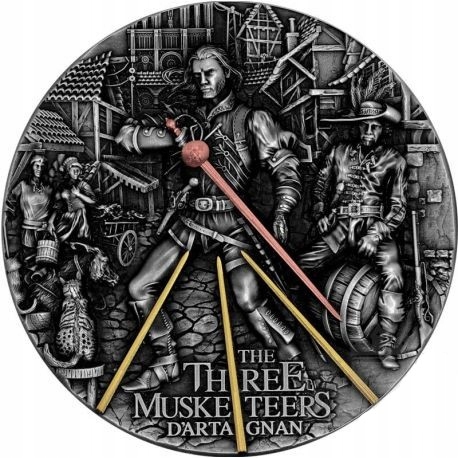 Дартаньянмістить дві унції чистого срібла 999. Монета викарбувана у вигляді високого рельєфу, має античне покриття та вибірково позолочена жовтим і рожевим золотом. .