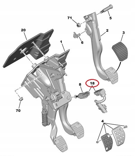 Новий, оригінальний датчик/перемикач + промінь стоп -світла (на педалі), встановлений у собаці (Peugeot - citroen).