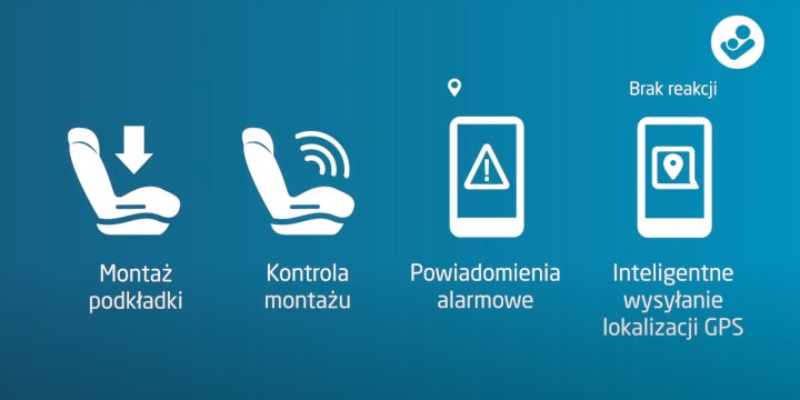 Якщо, виходячи з автомобіля, ви випадково залишите дитину без нагляду, подушка e-Safety надішле відповідне сповіщення про тривогу на ваш смартфон. Система реагує, коли ви відходите приблизно на 20 метрів від автомобіля. Однак, якщо ви не відповісте на сповіщення протягом хвилини після його надсилання, точне GPS-місцезнаходження дитини буде негайно надано максимум двом особам, указаним у програмі.