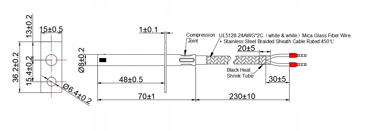 - з'єднувальний кабель L =250 мм - ізоляція зі скловолокна та металевої оплітки