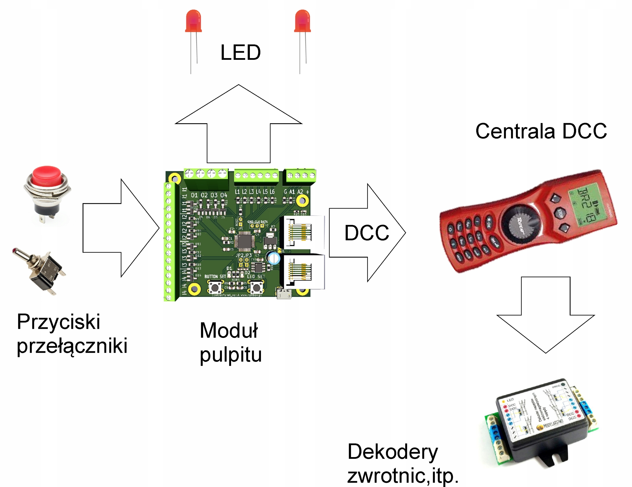 Модуль використовується для «оцифрування» аналогових робочих столів. Дозволяє керувати додатковими декодерами (декодерами поворотів, семафорами тощо) за допомогою кнопок і аналогових перемикачів, вбудованих у панель керування.