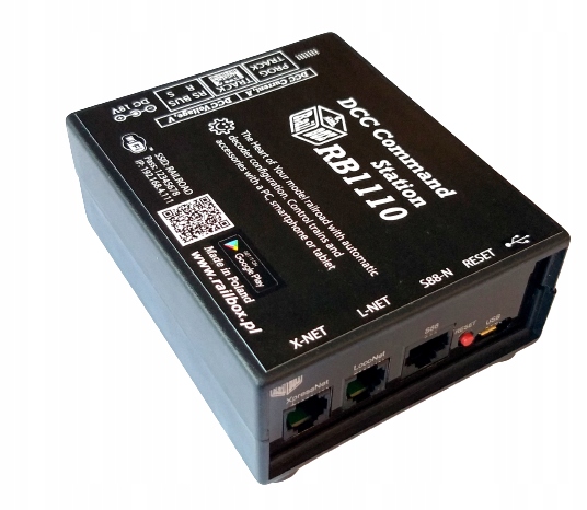 Блок керування RB 1110 призначений для керування моделями поїздів, обладнаними декодерами DCC, і керування додатковими декодерами (декодерами перемикачів, серводекодерами тощо). Сумісність з NRMA DCC, підтримує протоколи XpressNet® версії 3.6, LocoNet®, LenzLAN і Z21® через Wi-Fi, а також S88 і RS Bus для датчиків зворотного зв’язку. Керувати можна за допомогою планшета (телефону) з встановленим додатком RailBOX: Railroad Control (або іншим, наприклад, Roco Z21®) або додатковим маніпулятором, сумісним з XpressNet®, LocoNet®.