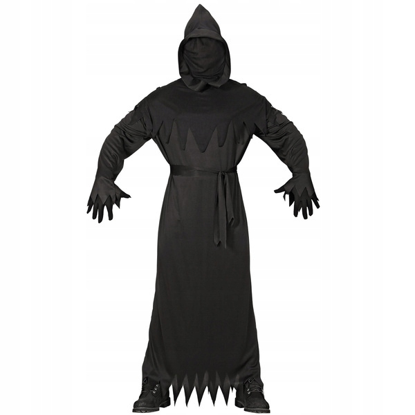 Довгий чорний халат із капюшоном. Капюшон наповнений повітряним матеріалом, який закриває обличчя і дозволяє дихати. Комір оброблений тканиною, розрізаною на трикутники, так само оброблені рукави та низ халата. Халат йде з поясом на зав’язці.