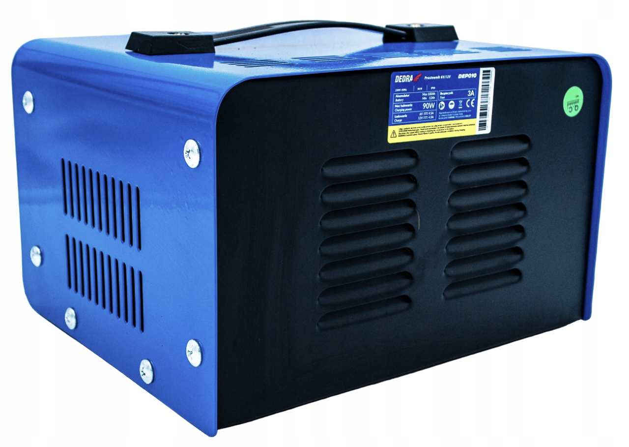 Випрямляч DEP010 - це пристрій, призначений для зарядки свинцево-кислотних акумуляторів напругою 6/12 В ємністю 12-100 Ач і з вільного потоку електроліту, які використовуються в мотоциклах, легкових автомобілях і т.д. Пристрій призначений для використання в побуті, ремонтних майстернях і аматорських роботах.