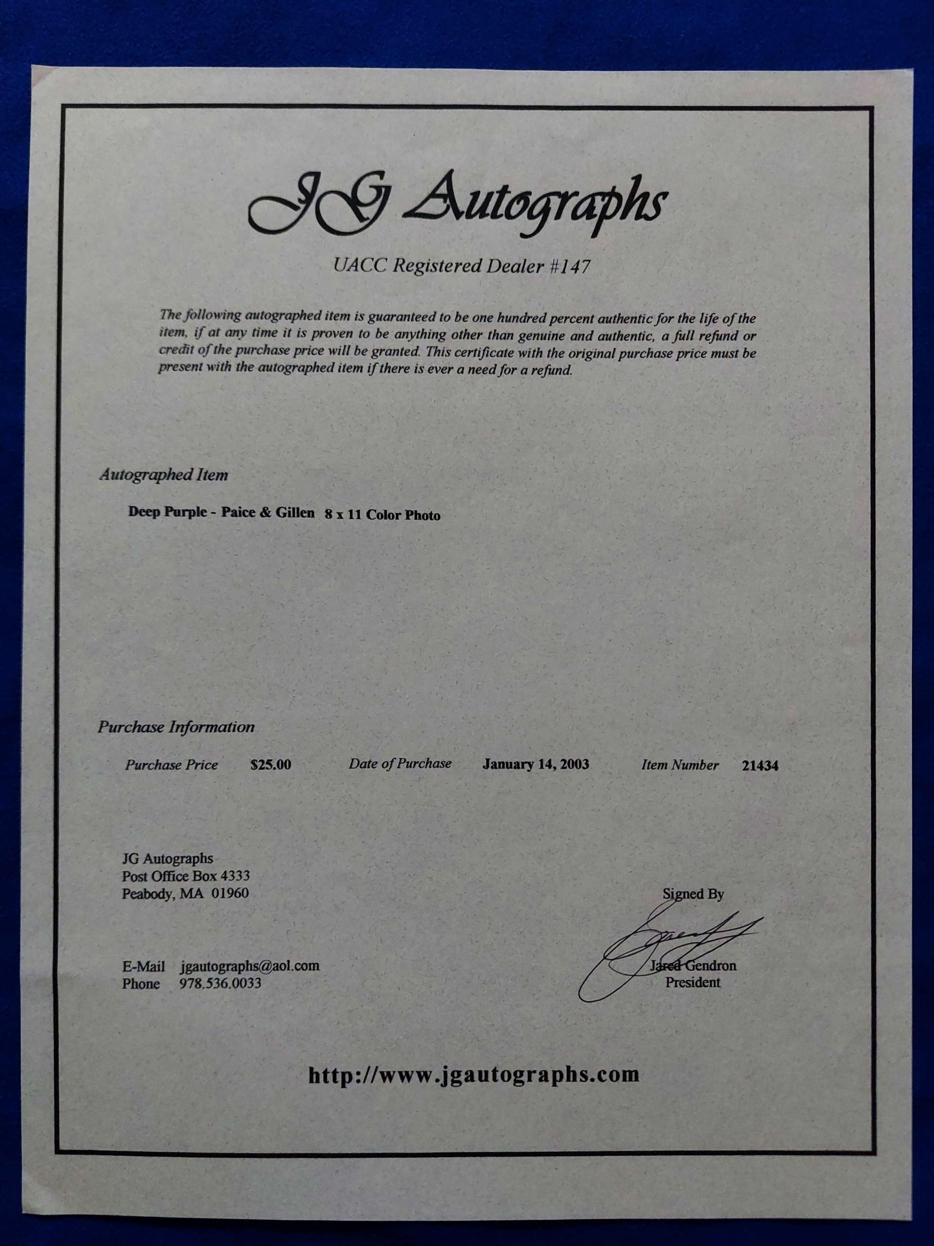 DEEP PURPLE Велике фото з оригінальними АВТОГРАФАМИ + СЕРТИФІКАТОМ